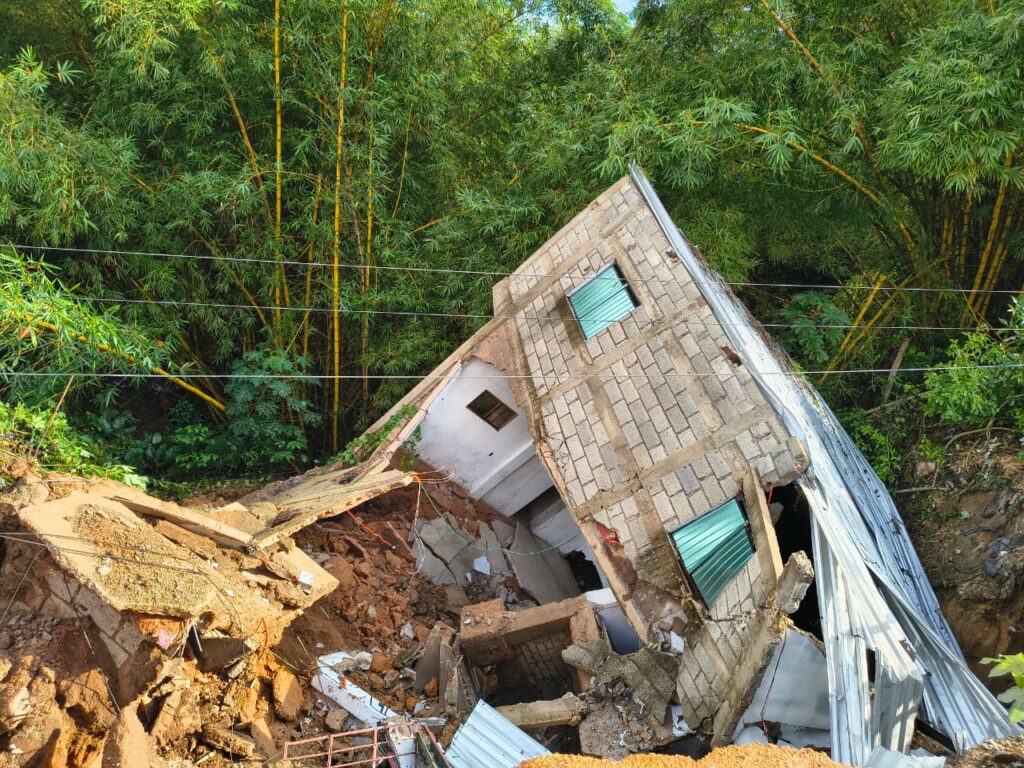 Vecinos piden a las autoridades municipales de oteapan su intervencion y actuar de inmediato antes que se siga derrumbando y valla alcanzar a otras viviendas.